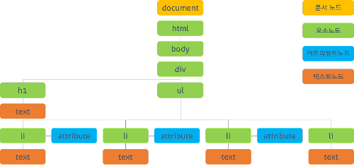 웹 페이지를 이루는 태그들을 자바스크립트가 이용할 수 있게끔 브라우저가 트리구조로 만든 객체 모델을 의미합니다.