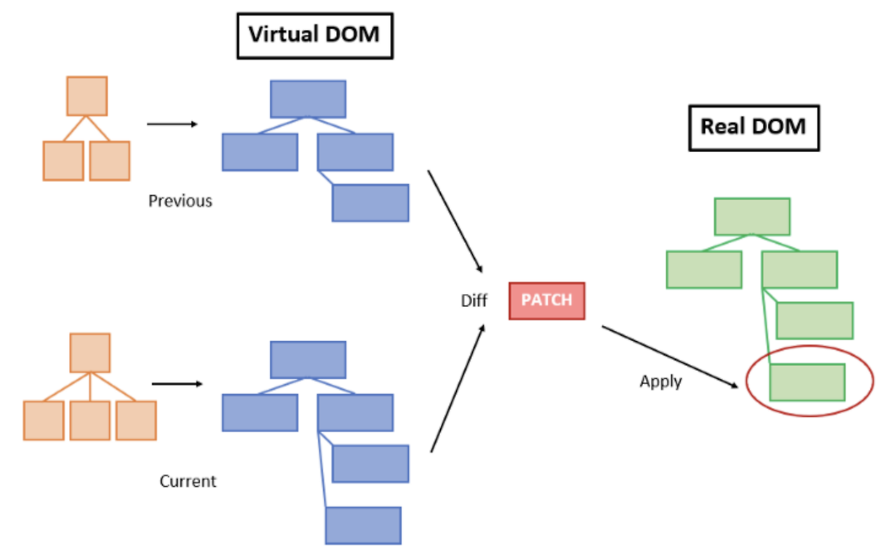 Virtual DOM을 사용하면 실제 DOM에 접근하여 조작하는 대신, 이를 추상화한 자바스크립트 객체를 구성하여 사용합니다.