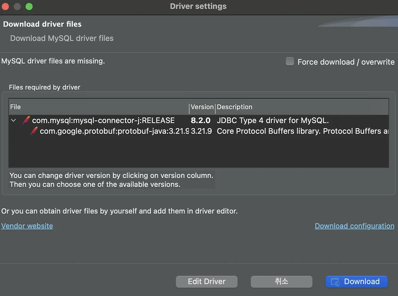 MySQL 서버에 연결하려면 드라이버를 설치해야 합니다.