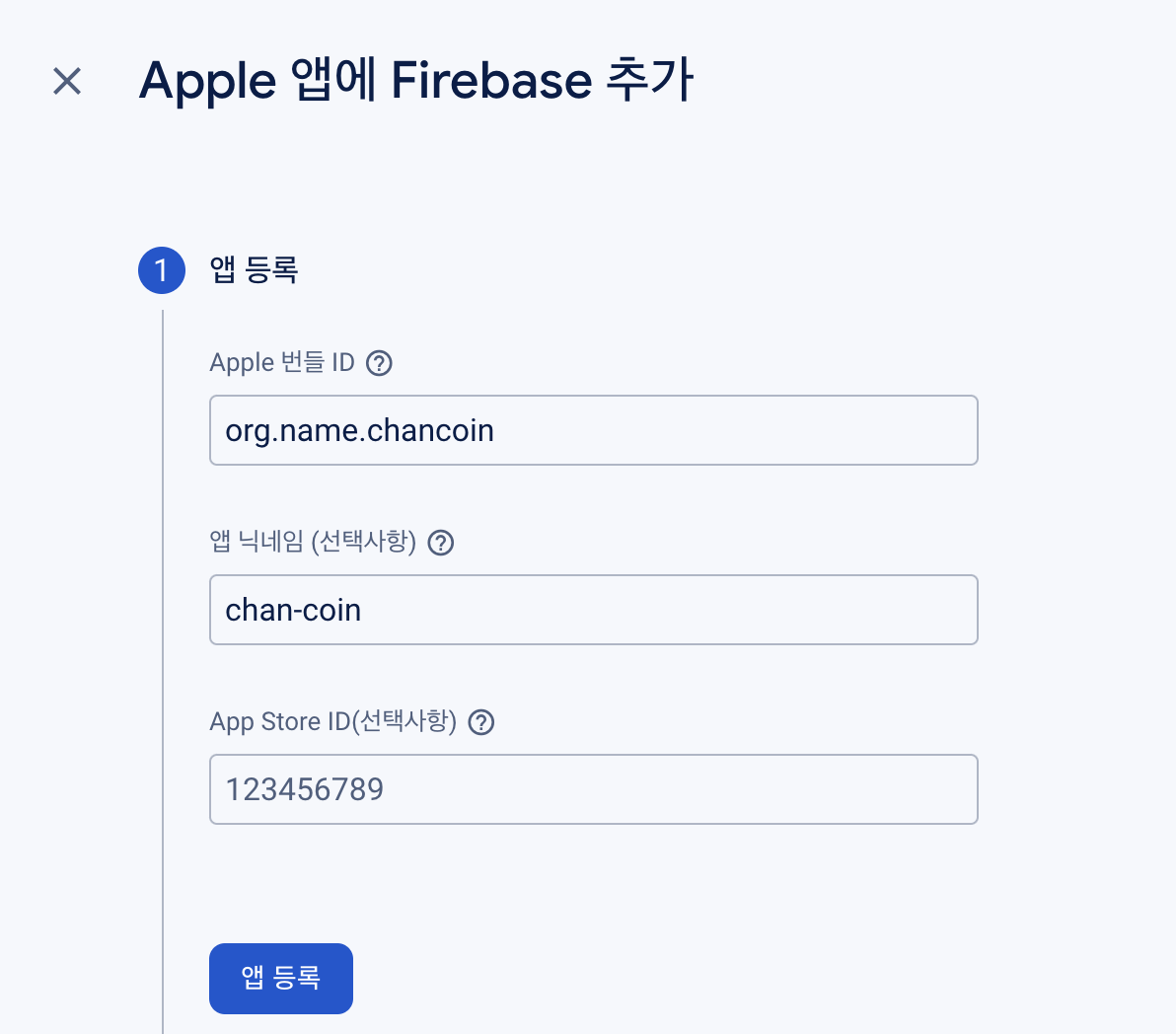 Apple 번들 ID 에 넣으시면 됩니다. 다른 부분은 선택사항이기 때문에 앱 등록으로 넘어 가셔도 됩니다.