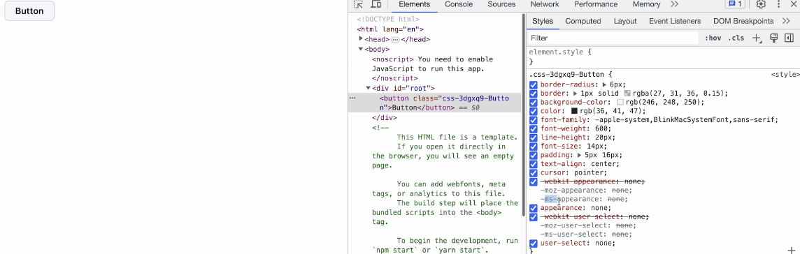 emotion 이 자동으로 브라우저에 필요한 스타일을 추가적으로 적용해 준다는 것입니다.
