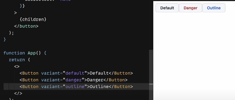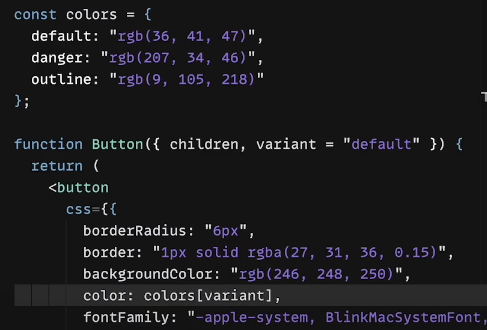 이렇게 넘어온 variant 인자값에 따라 스타일을 동적으로 변경시켜 줄 수 있습니다.