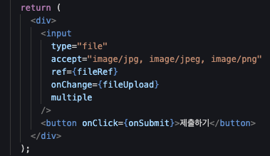 기본적으로 type 은 file 이라고 설정을 해야 합니다. 또한 accept 부분은 어떤 이미지 파일들만 허용할 것인지 정해주는 기능입니다.