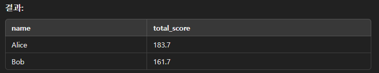학생 점수 테이블에서 반올림하여 총점을 계산하는 예제 입니다.