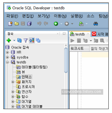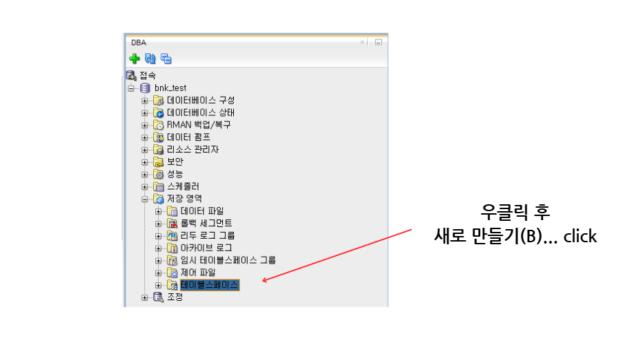 로그인을 한 후에는 테이블 스페이스 작업을 위해 DBA 창을 열어야 합니다.