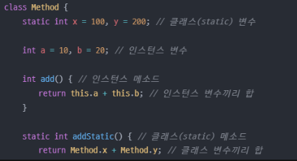 static 키워드를 가지지 않는 메소드는 인스턴스 메소드 라고 합니다.