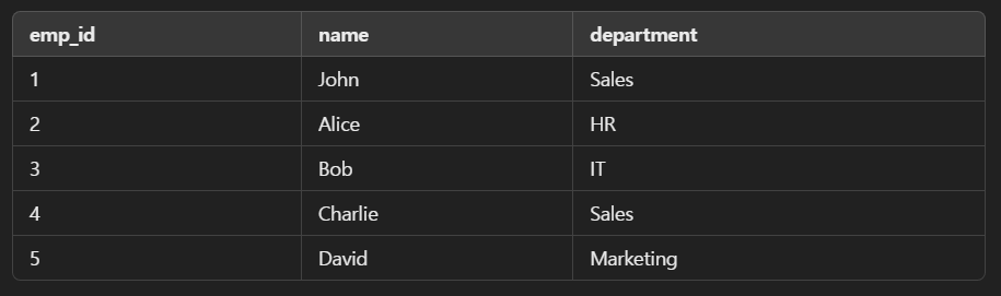 다음과 같은 테이블 employees 가 있다고 가정해 봅시다.